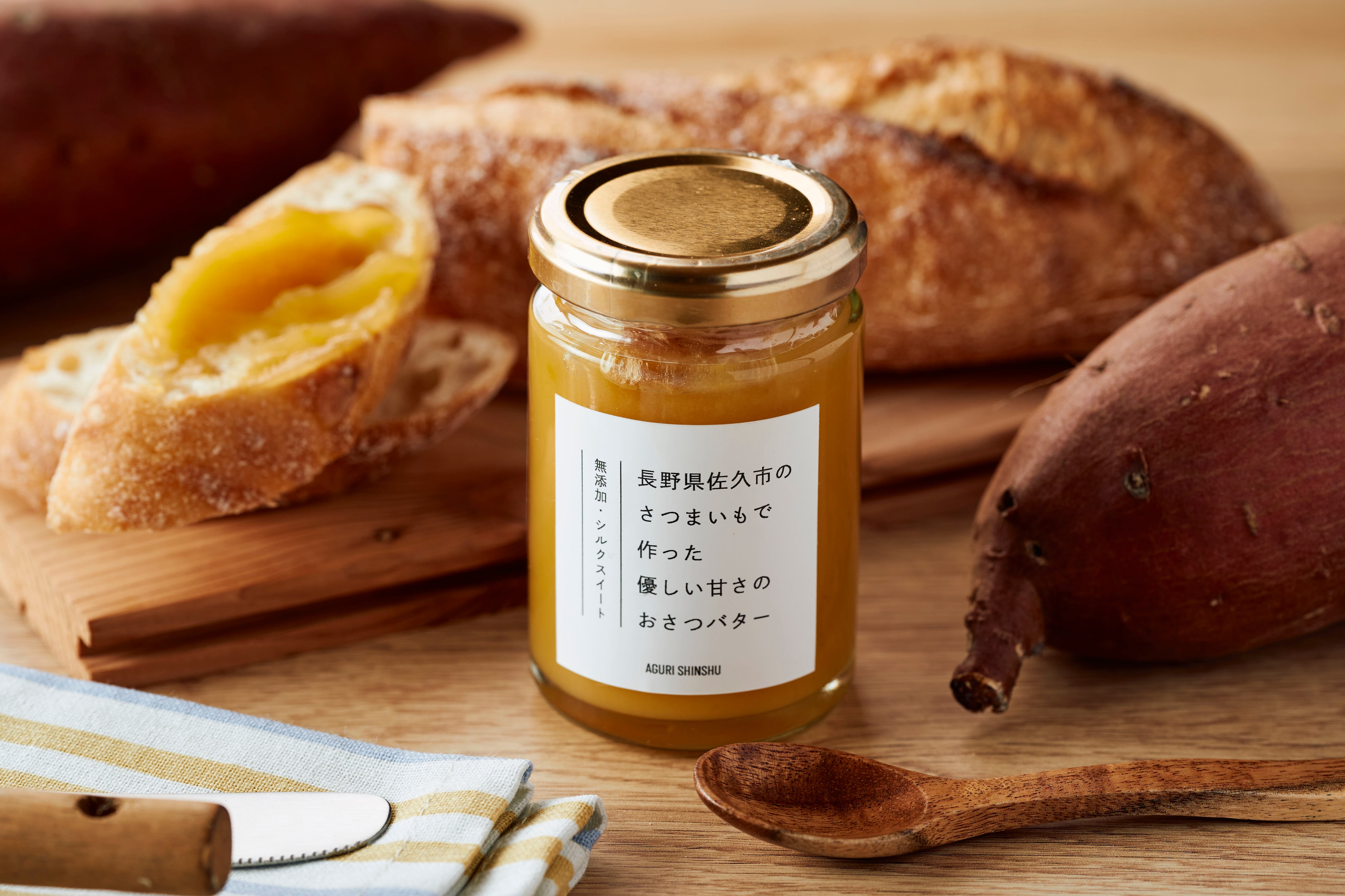 長野県佐久市・あぐり信州様より、丁寧に育て熟成させた甘藷「シルクスイート」で作った無添加のおさつバターです。